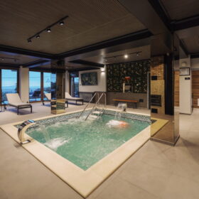 Jacuzzi-ul spațios, cu apă sărată și vedere panoramică spre natură, este locul perfect pentru momentele de relaxare deplină și răsfăț.